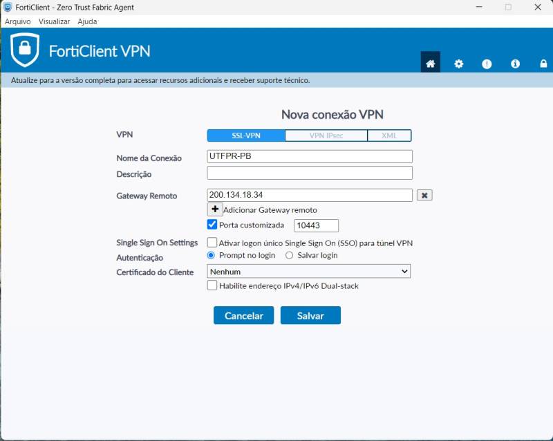 - Nome da Conexão: UTFPR-PB