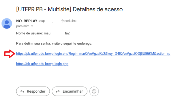 1. Após a criação do site, será encaminhado por e-mail as instruções de acesso, conforme exemplo a seguir: